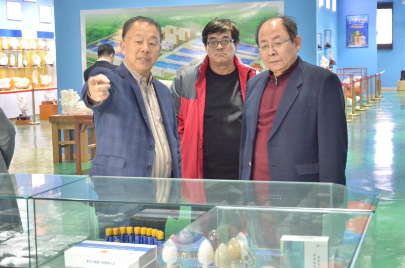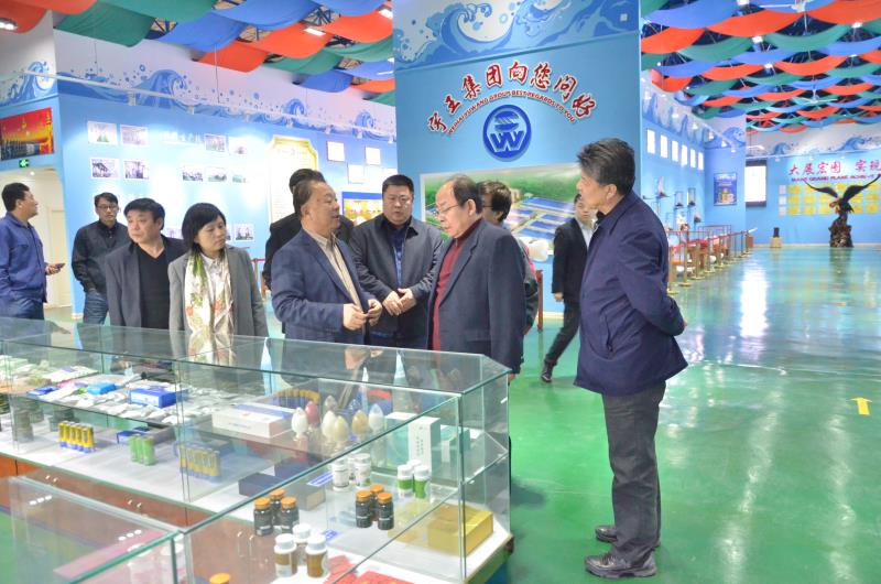 姚福忠一行先后参观了宇王集团海洋生物蛋白、岩藻多糖生产车间、研发中心、海洋生物馆。边参观边对宇王集团的原料采购、加工过程、销售渠道等详细了解询问,对宇王集团全面加强质量管理、执行同线同标同质标准予以高度认可。