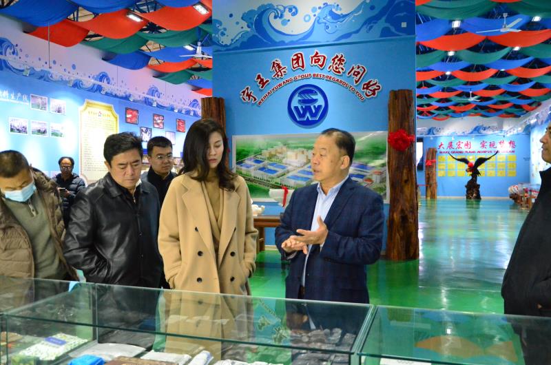 苗强董事长重点介绍了公司在疫情防控背景下蓝色海洋经济发展、海洋生物工程新建项目,水产品出口加工以及食品安全管理等情况。并陪同考察了宇王海洋生物馆。市领导对宇王集团多年来节日水产品市场供给保障工作和食品安全保障工作给予高度评价。