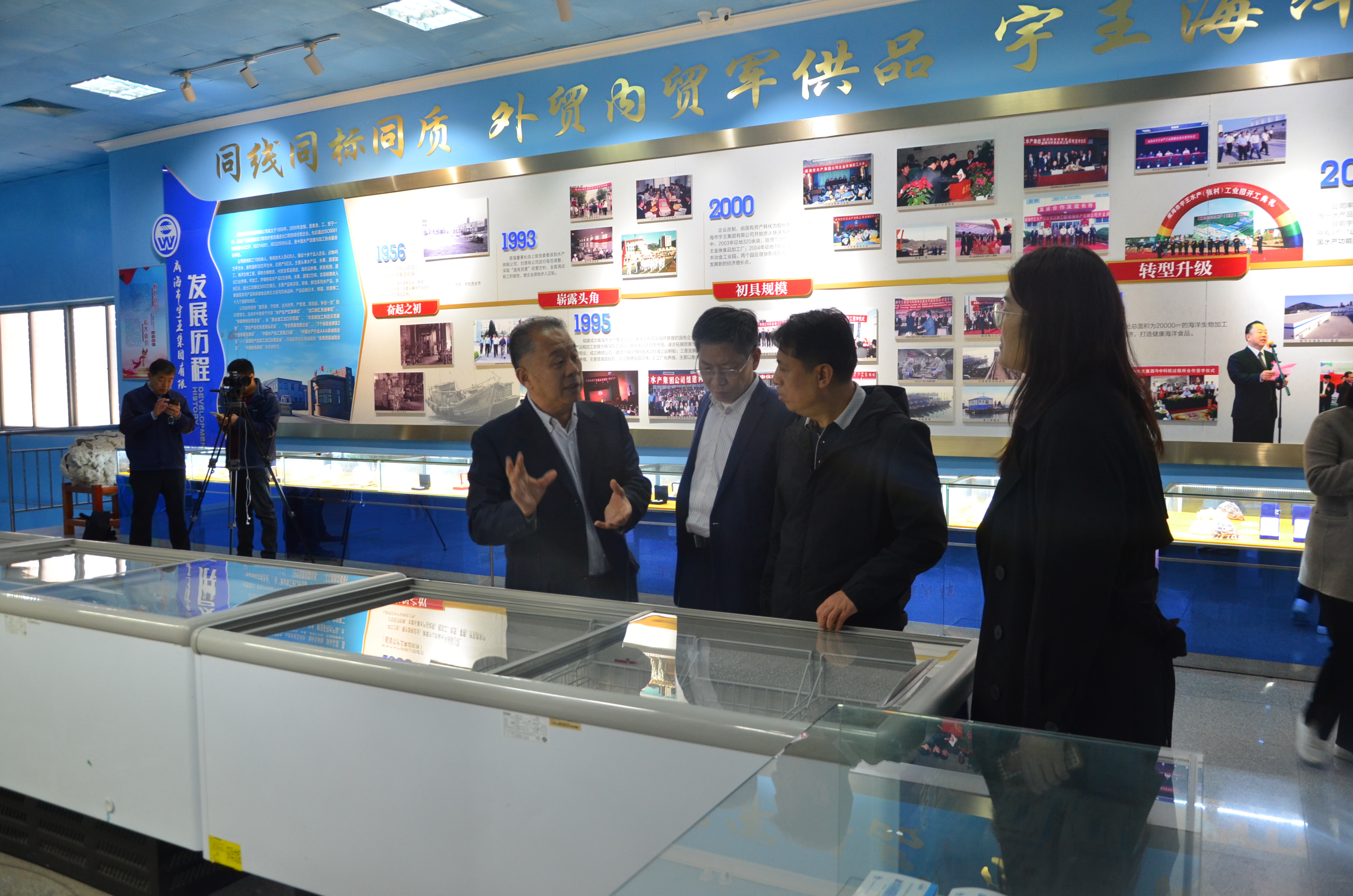 领导们首先参观了宇王集团产品展示大厅,随后实地观看了海洋生物生产车间产品生产流程,并听取了宇王集团关于标准化工作的汇报。领导们对宇王集团表示高度认可,高度赞扬宇王集团爱国爱军的红色思想和严谨创新的标准化工作,并针对标准化融合创新工作新要求、新进展进行交流沟通。