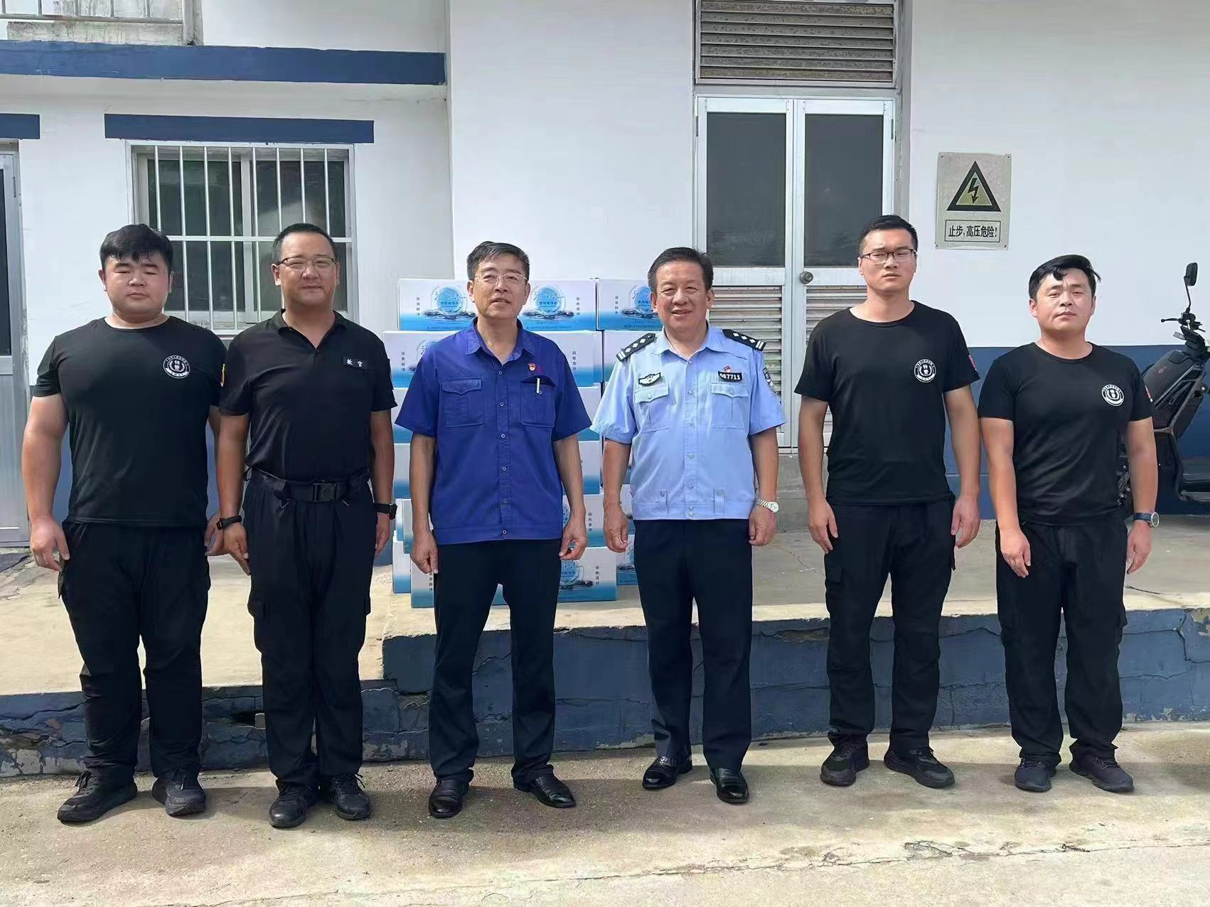 正值热烈庆祝中国人民解放建军96周年之际,为向在酷热天气下仍奋斗在工作一线的战士、特警、消防员表示敬意,在宇王集团党委、董事会的指示下,工会负责人分别到环翠区武装部、环翠区特警大队、经区消防救援大队等单位走访慰问,并送上矿泉水等慰问品。