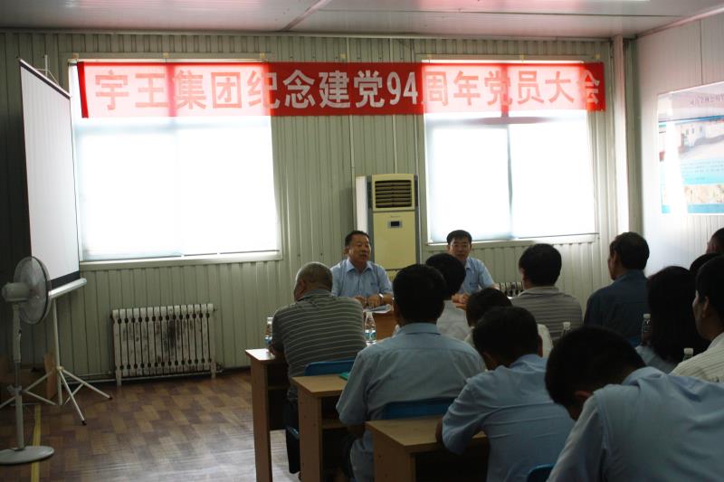 “七·一”来临之际,宇王集团召开党员大会,隆重纪念建党94周年。集团公司全体在职党员及部分退休党员代表参加了会议。会议由集团公司党委副书记隋树武主持。