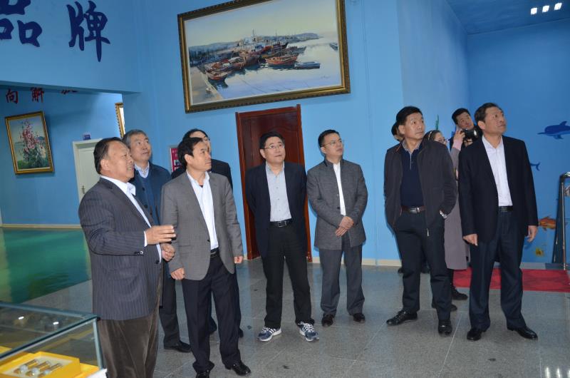 苗总陪同领导先后参观公司海洋生物馆和海洋生物胶原蛋白加工厂,详细介绍了公司的发展历程、产业结构及各项科技研发成果。李局长和宋厅长对宇王集团的发展表示肯定,并对公司的海洋渔业加工产业给予高度关注和重视。领导们与苗总就诸多水产品方面的工作进行深入探讨,表示将长期关注宇王的发展,祝宇王取得更好的成绩,在水产业起到引领示范作用。