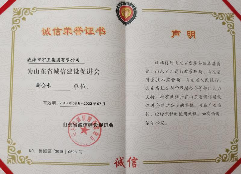 热烈祝贺宇王集团董事长、总经理苗强先生当选为山东省诚信建设促进会副会长