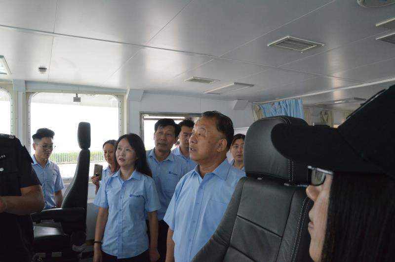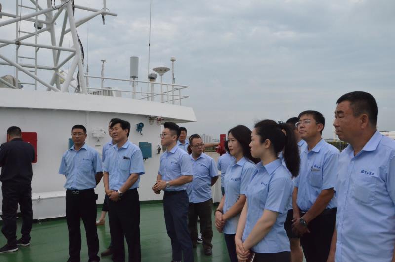 威海宇王集团是集渔、工、贸于一体,拥有产品自营进出口权和外贸流通进出口权的大型综合企业。主要从事水产食品加工、海水养殖、海洋生物科技、进出口业务等,是威海市水产食品加工出口的骨干企业。宇王集团高管人员依次登上中国海监4067船,参观考察了船上的驾驶室、轮机部、上层甲板和船员生活区等,并饶有兴趣地对船上的有关设备进行咨询。